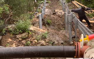Crews have installed brackets along the cliff to support the temporary water line we have been using post freeze.